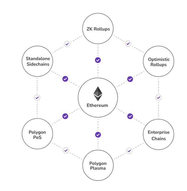 2017年3名來自印度區塊鏈開發者聯合創立Matic,運用側鏈的鏈下運算來提供以太坊的擴展性解決方案,并在今年2月10日宣布更名為Polygon。Polygon兼容以太坊EVM,支持以太坊開發者快速遷移,并使用Plasma鏈外擴容和PoS機制保障資產安全,被稱為“印度版”以太坊。