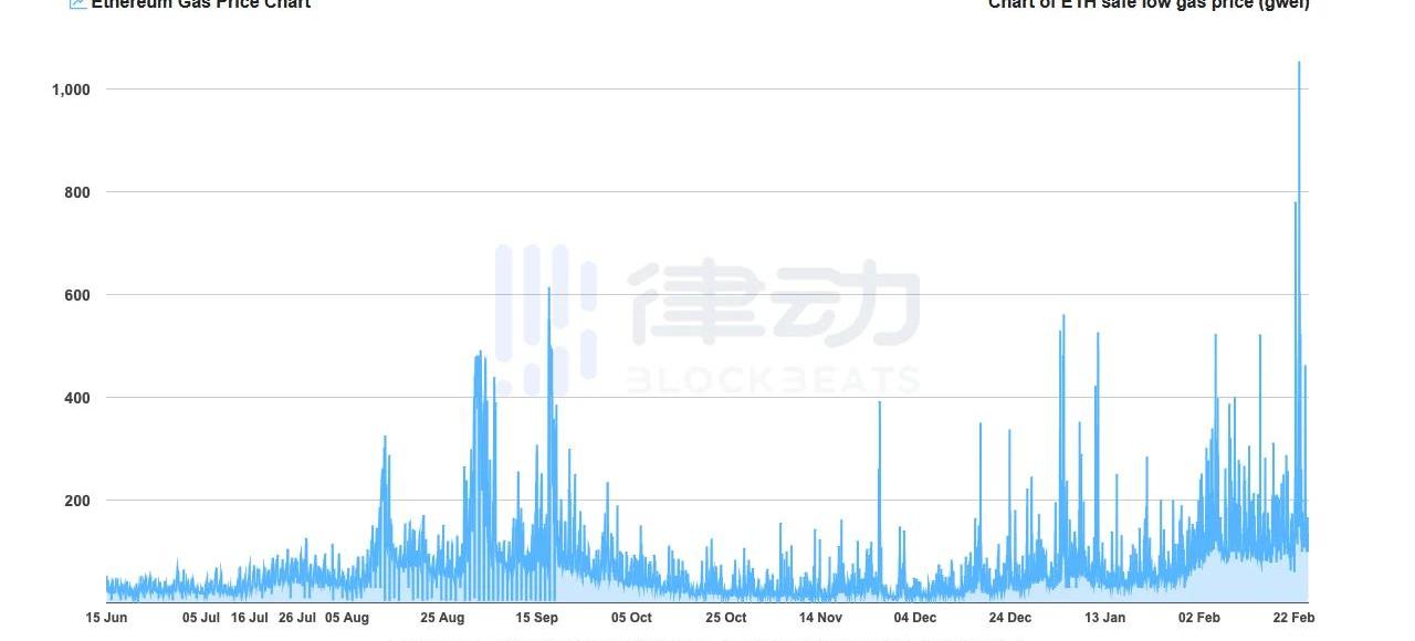 圖源:bitinfocharts以太坊區塊交易信息的價值正在變高,同時,對區塊打包需求也在提高。從不斷飆升的gas費用也可看出。然而,我們目前還看不到gas費用降低至10gwei以下。