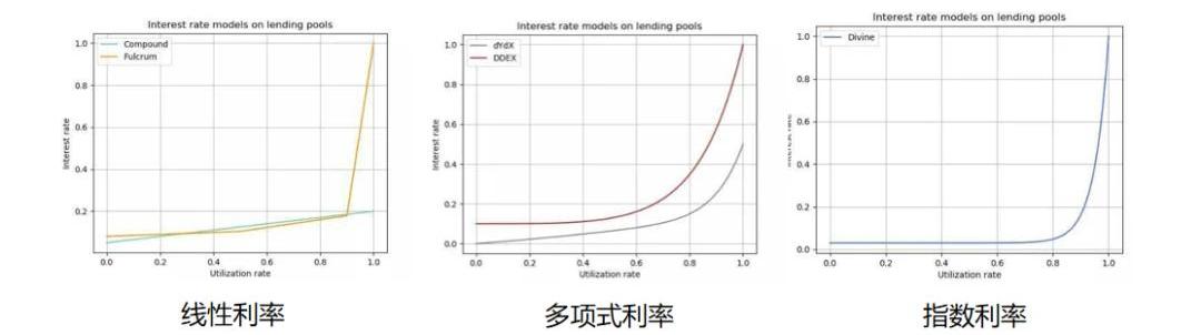 一般而言,在去中心化借貸利率中,利息模型主要為了符合項目的供需設定的,主要有三種:線性利率、多項式利率和指數利率。