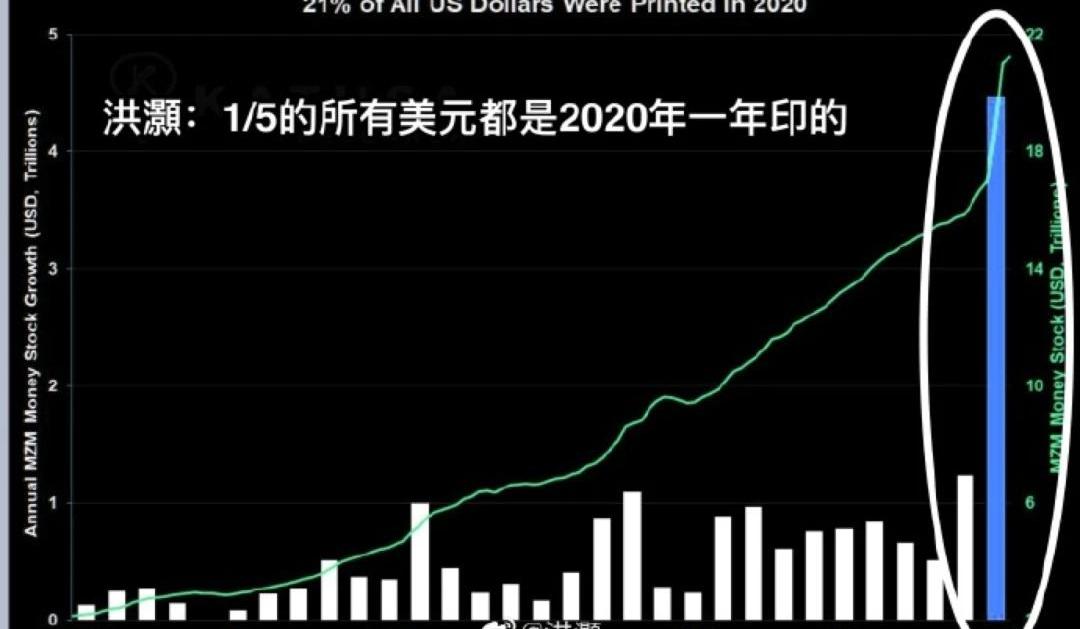 “比特幣上漲最主要的因素來自于宏觀經濟環境,它給比特幣起飛創造了完美條件。”CoinShares首席戰略官MeltemDemirors如此表示。這里說的宏觀經濟環境,指的是新冠疫情影響下,各國央行為了拯救停擺的經濟,瘋狂開始印鈔機,貨幣放水的幅度,遠超過去上百年。摩根士丹利預估,G4四大央行的資產負債表會在明年年底擴大到近30萬億美元。在各國央行中,美聯儲資產負債表擴張最為迅猛,其擴張量占全球央行總量的三分之二,數據統計,有史以來的美元總量,有21%是2020年這一年印出來的。