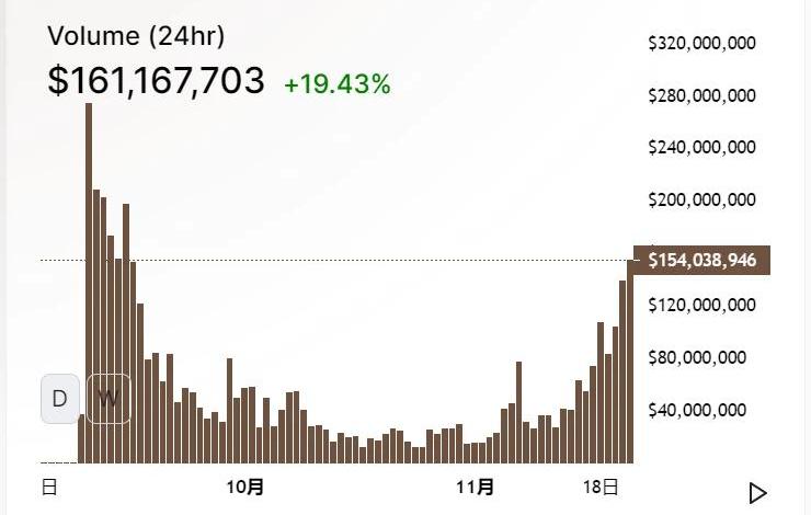 圖中顯示的數據是11月22日的數據,交易量為4.3億美元。根據圖中的歷史數據,自11月17日流動性挖礦停止后,Uniswap一連幾天的交易量如下所示:11月16日:2.75億美元11月17日:3.9億美元11月18日:2.87億美元11月19日:2.53億美元11月20日:3億美元11月21日:3.76億美元11月22日:4.3億美元由此可見,在流動性挖礦停止后,Uniswap在經過短暫的休整和低谷后再次爆發,并且交易量持續走高,超過了流動性挖礦停止前的交易量。這足以證明Uniswap對用戶的強大黏度,也就是說流動性挖礦的停止僅僅只是造成了其鎖倉價值排名的下降,但是在對用戶的吸引力上絲毫不減。但是僅僅只看Uniswap的交易數據并不能說明各大交易所之間用戶黏度的此消彼長。在這一輪Uniswap的流動性挖礦停止后,從Uniswap那里搶到最大流動性的就是SushiSwap了。因此,我們除了看Uniswap自身的的縱向對比,不妨也看看Uniswap和SushiSwap的橫向對比。下圖是SushiSwap近期的交易量數據圖。