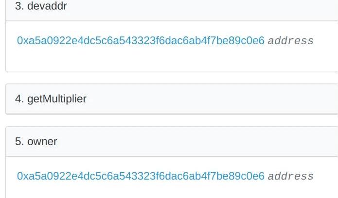 textMiner.sol部署地址:https://etherscan.io/address/0x9858728de38c914c2ea32484a113b6628d984a82#code1.漏洞一項目擁有者在textMiner.sol智能合約1000行處實現了withUpdates()函數。該函數的的作用是可以將任意數量的為devaddr地址鑄造任意數量的代幣。而通過查看圖2中devaddr和項目擁有者owner的地址值,可以發現兩者相同,因此項目擁有者可以通過該漏洞為devaddr地址鑄造任意數目代幣。同時,當前的devaddr地址擁有者可以通過圖3的dev()函數將devaddr地址值更換到另外一個地址,因此最終項目擁有者可以更換將devaddr地址值更換的方法,向任意地址中鑄造任意數目代幣。雖然項目擁有者將圖1中的withUpdates()函數設置為不允許智能合約外部調用,但是卻有意地在圖4中919行實現了允許被外部調用的add()函數,然后通過921行代碼調用withUpdates()函數,從而實現向devaddr地址鑄造1000000000000000000000000000000數量代幣。