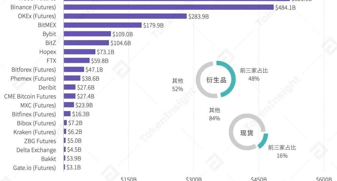 大型衍生品交易所永續和交割合約占比,來源:TokenInsight