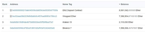 超過300個交易地址的總余額高達1800萬ETH,相當于770億美元。