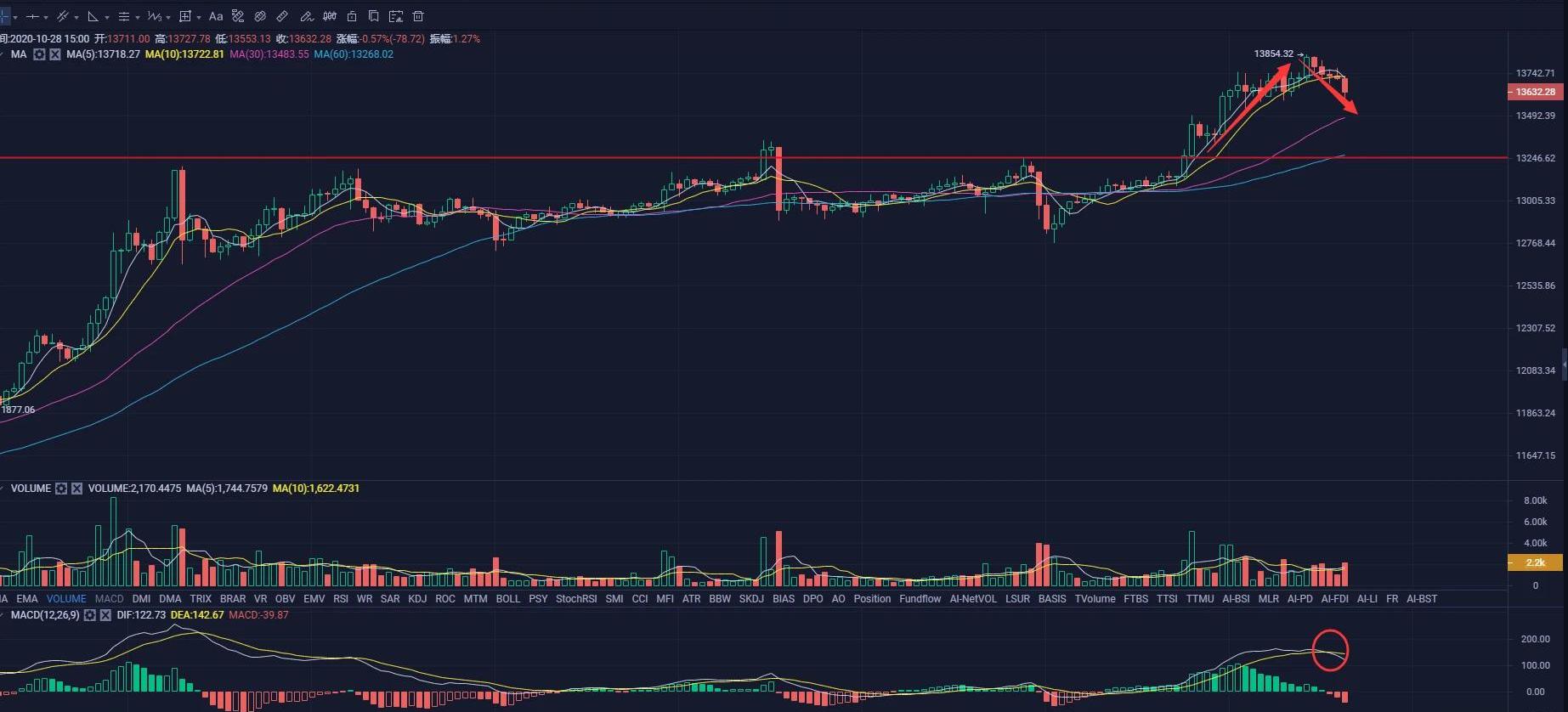 \n新加坡星展銀行,是新加坡最大的商業銀行,但是目前還在審核,還需要監管層的點頭,一旦點頭后對比特幣市場發展又是一個相當大的促進,新加坡的金融地位可不容小覷,一旦這家最大的商業銀行在比特幣上嘗到甜頭后,其他金融機構也會爭相效仿。當前比特幣的發展環境可以說是極好的,機構的參與才能提高比特幣市場的規模,但當前的情況是機構一直在買比特幣,比特幣價格一直在飆漲,而國內散戶在買期望補漲的其他主流幣和山寨幣,補漲的邏輯是在于比特幣漲完了,資金會跑到其他幣種去推高價格,但問題是,機構對比特幣,最多加個以太坊,之外的幣種沒有任何興趣,沒有這部分資金參與,其他幣種還有推高的機會嗎?或許在機構的不斷加持下,比特幣價格會不斷上漲,甚至在未來不久,2萬五美元、5萬美元也不再是奢望,但到了那個時候,還有散戶什么事嗎?回到行情上,整體行情就不用多說了,非常漂亮的上漲趨勢,不過今天有報道稱比特幣刷新了2018年1月份以來的新高,這個數據應該是不嚴謹的,去年的高位就已經是13968,還有100美元的差距。小時線級別很明顯可以看到,昨天突破平臺后,先是稍微回踩了一下,然后加速上行,隨后漲速放慢,當前開始回調,回調的節奏也比較正常,并未出現大起大落的情況。