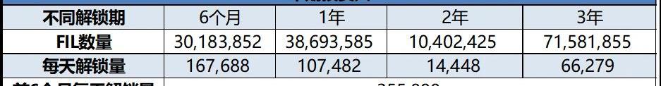 FIL分配情況,圖片來源:RealBlockchainFIL的總量是20億枚,其中早期投資人占到7.5%的比例,共1.5億枚,這些代幣的解鎖周期分為6個月、1年、2年、3年四種,根據不同解鎖周期FIL代幣的數量可以計算出,主網上線后的前6個月,來自早期投資人的代幣釋放量超過35萬枚/天。