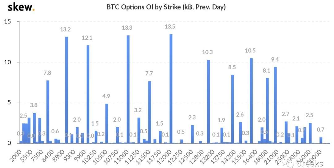 近兩日put成交量很大,但是都是短期買入影響有限,所以期權IV持續穩定。由于價格在上漲后進入寬幅震蕩,比特幣期權的偏度skew小幅上漲。