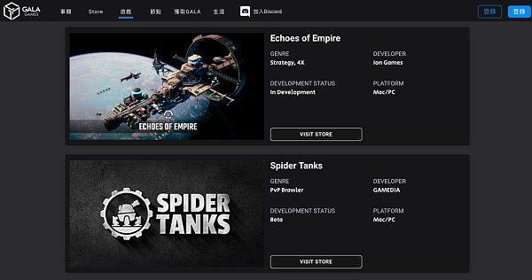 在今年GameFi的熱潮下區塊鏈游戲越來越多,目前市場上暫未出現游戲平臺的龍頭。Gala Games于其它主打手機游戲的平臺相反,主打電腦(PC/Broswer)游戲,針對玩家推出不同類型的游戲。目前Gala旗下共推出了5款游戲,分別是Town Star,Spider Tanks,Mirandus,Fortified和Echoes of Empire,涵蓋模擬經營、MOBA、RPG、策略、PVP塔防等多種傳統游戲元素。