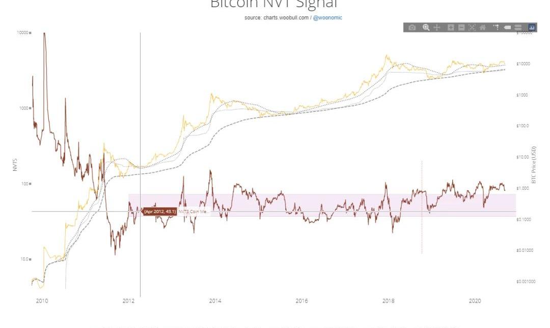 圖10.Source:charts.woobull.comBTCNVT數據由102下跌到85,下跌幅度接近20%,但NVT數據趨勢延續性較強,如圖所示,NVT平均波動>40%,所以此次NVT參考意義受限。