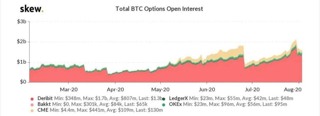 XRP/HKD+2.59%加密貨幣市場迅速發展,帶來更多的新金融工具和投機機會。在期貨市場仍然保持輝煌的同時,期權成為一種受到市場青睞的新型衍生品,而且正在打破紀錄。在2020年3月12日的極端波動之后,人們對加密貨幣期權的興趣顯著增加。從那時起,在所有支持這一工具的交易所中,期權合約的持倉量持續增長。僅在芝加哥商業交易所,持倉量就增長了十倍,總的來說,在過去一個月里,比特幣期權市場增長了50%,總持倉量達到20億美元,其中80%以上位于Deribit。