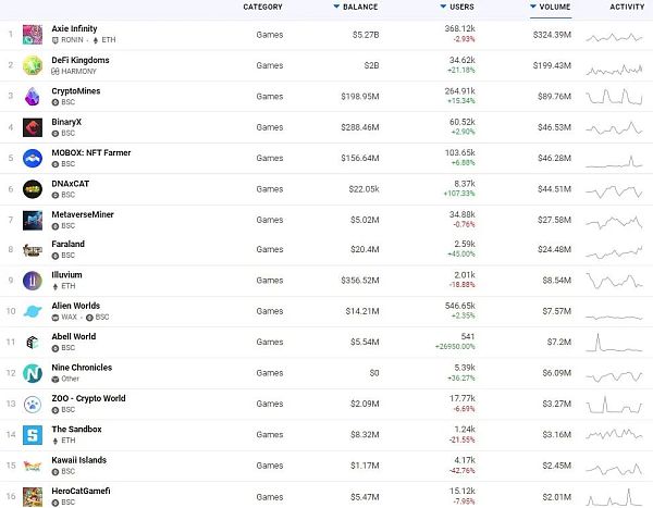 回顧GameFi概念的爆發,也就是10中下旬,進入11月之后,GameFi一路高歌,在市場情緒的推動下,無論是一些原創的項目,還是一些仿盤,用戶數量、交易額各項數據都大幅增長。