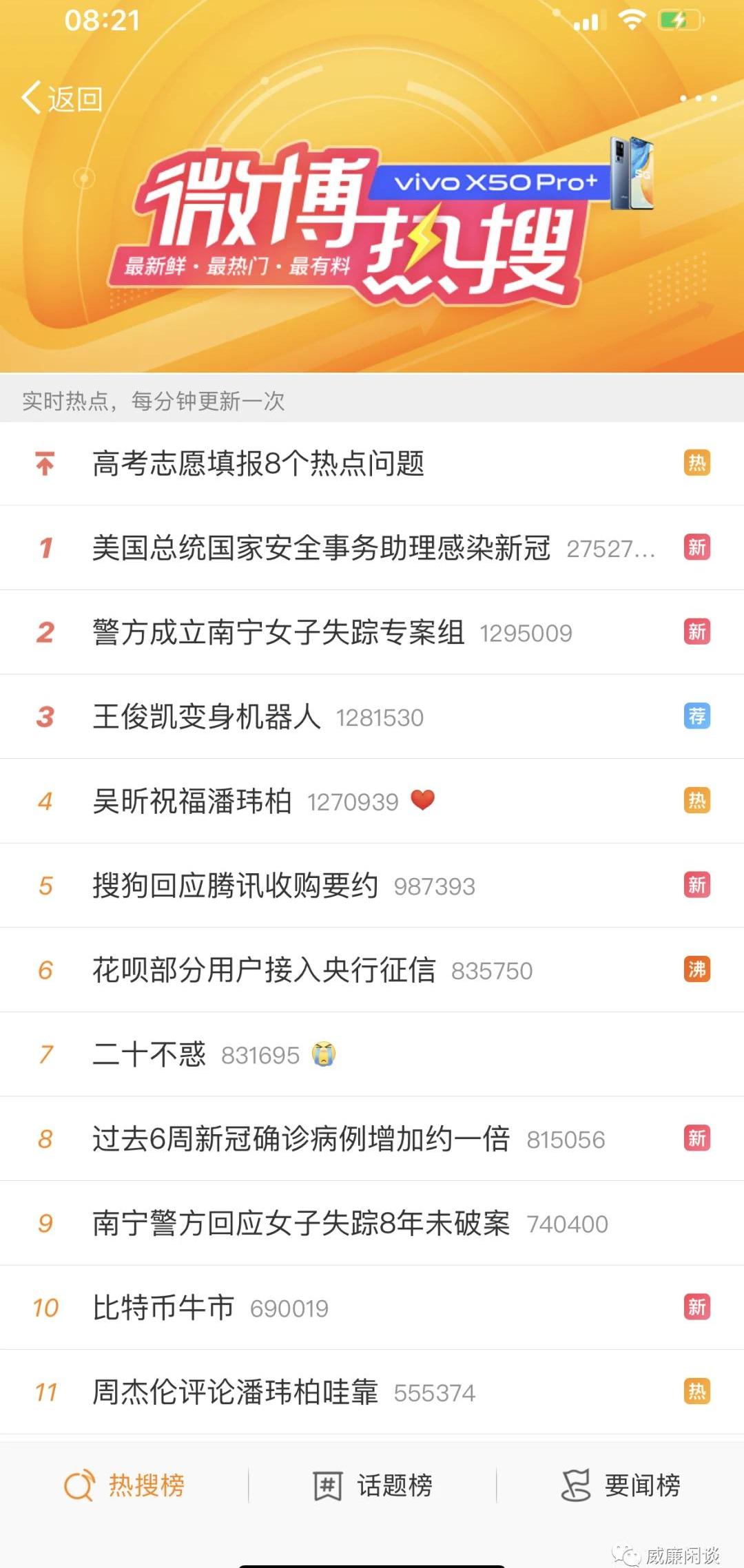 XRP/HKD-0.98%編者按:本文來自威廉閑談,作者:陳威廉,Odaily星球日報經授權轉載。今天真是今年最好的一天,因為我們不知道時隔了多久終于又看到了希望--沖往歷史新高的希望。在昨晚之前,人們似乎覺得10500,也就是今年的高點是很難打破的,總要磨一磨,沒想到啊,比特幣似乎今年并不屑于在這種位置上浪費時間,直接就過去了。所謂“壓力位和支撐位一樣,都是紙糊的”。今天微博熱搜和各大媒體的標題我們可以預見,肯定都是“比特幣牛市”與“比特幣牛市來了嗎”之類的: