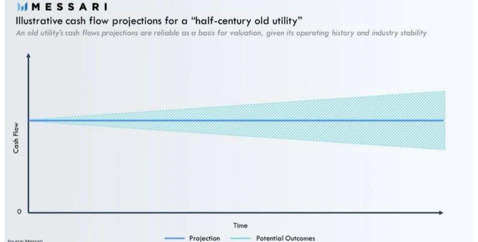 該圖展示了「這家有18個月歷史的科技初創企業的」現金流預測,考慮到其運營歷史和行業的不穩定性,一家歷史短暫的科技初創企業的現金流預測不是可靠的估值基礎如何對DeFi代幣估值
