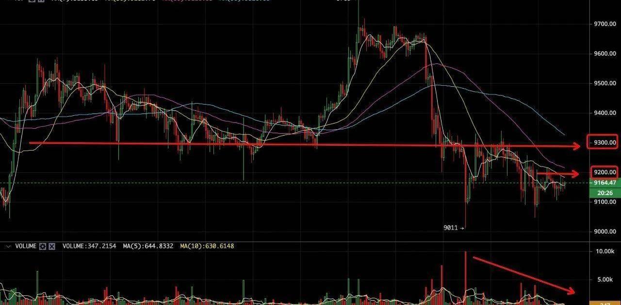 從推廣和宣傳方面來看,加密市場的向往推廣,包括比特幣ATM機器的鋪設,加密貨幣支付服務的興起,加密圈人士的加密營銷,主流媒體的報道等,絕大部分都是BTC和ETH,也只有這兩個幣能夠代表整個加密貨幣市場。而對于進入幣圈的大部分用戶來說,BTC和ETH也是最先接觸到的兩個幣,先發優勢明顯,獲取的流量和資金涌入也是最多的。從用戶的角度來看,進入金融市場投資,最主要的目的是為了獲利。買山寨幣就相當于買彩票,中頭獎的概率太低了。相比于山寨幣來說,比特幣和ETH代表市場的基本盤,幣價穩定,波動性較小,買入后盈利的概率遠大于山寨幣。而隨著市場的發展和擴大,BTC和ETH能夠在其內在價值和外在經濟效應的雙重加持下,獲得比較穩定的發展和升值潛力。孰優孰劣,一看便知。再從各類加密貨幣衍生品的發展來看,最開始是BTC合約,然后過渡到ETH等主流幣、二三線幣種,整體上增加了代幣的流動性和幣值的穩定性。但經常交易合約的投資者都明白,交易深度和流動性至關重要,BTC擁有無與倫比的高交易深度和流動性,ETH也有,其他幣種的交易深度太差了。在一般的行情里表現不那么明顯,一旦遭遇突發行情,悔不當初。你會發現,交易所增加幣種合約,本來目的是為這些幣種提供更強的流動性,方便用戶更多的選擇,但最后卻無一例外的朝著強者愈強、弱者愈弱的馬太效應方向發展,玩其他幣種的合約越來越少,最后都集中到BTC和ETH上面了。至于山寨幣玩家,除了少部分仍活在幻想中外,要么虧損后踏上漫長的回本路途,要么錢包里屯著大量的歸零的籌碼無處安放,要么被山寨幣傷太深從此退圈,十倍百倍千倍的一夜暴富的神話偶爾在市場中流傳,但故事的主角卻與你無緣。一切喧囂和鬧劇的背后,正如華爾街分析師MaxKeizer所言:“山寨幣唯一的目的就是從由FOMO驅動的投資者手中奪走比特幣。”綜合起來,加密貨幣市場在逐步市場化、主流化、合規化,而在這個過程中,最容易吸納新用戶和新資金的,便是BTC和ETH。同時,隨著山寨幣的逐步沒落,投資者在逐步遠離山寨幣,向主流幣靠攏。回到行情上,BTC本周三從9700美金快速下跌后,整體反彈不及預期,短時受限于9300美金壓力,在9000-9300美金區間內窄幅震蕩。小時線級別,MA均線呈空頭排列,最近的均線壓力線在9200美金處。日內觀察9000-9100美金區間的底部支撐是否牢靠,提防假插針走勢。