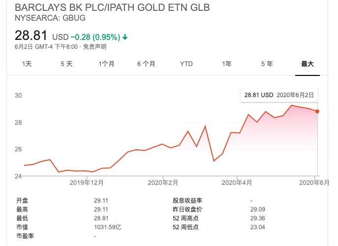 這個ETN是為看好黃金期貨市場的投資者設計的。此指數旨在提供對巴克萊黃金3個月指數(以下簡稱“指數”)的敞口。該指數旨在跟蹤巴克萊黃金3月指數的總回報加三月期美國國債收益。