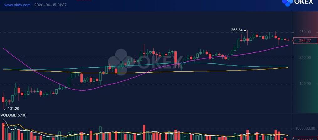 1.現貨市場OKEx行情數據顯示,上周ETH價格寬幅震蕩,最低跌至226美元,周內收于235.39美元,一周微漲0.8%。