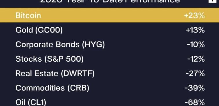 長期以來,我們一直在宣揚將BTC納入投資組合的好處。區塊鏈如何是一個合法的資產類別,非對稱上行等等。對比而言,今年持有4月原油期貨多頭合約的人,不得不花以30美元一桶的價格將手中的期貨合約脫手。即使拋開最近這一反常市場現象,石油也是一個糟糕的資產類別。石油35年的年復合增長率為零點零。。它甚至從來沒有在最好的時候打到過6%。BTC幣的9年CAGR為215%,更不用提它與世界其他地區的長期相關性基本為零。