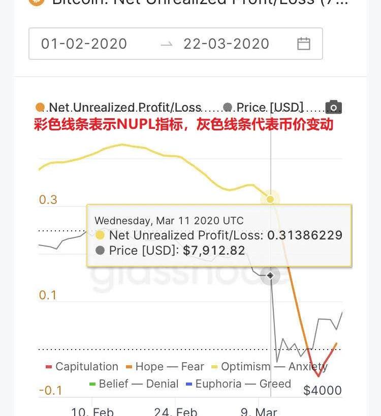 全網比特幣賬面損益/比特幣市值4月21日,鏈上數據提供商glassnode發布推特表示“隨著比特幣價格超過7000美元,NUPL指標接近了‘樂觀區域’,這與2019年4月份的情況類似,指標進入該區域表明投資者信心回升,可能會帶來價格的上揚。”