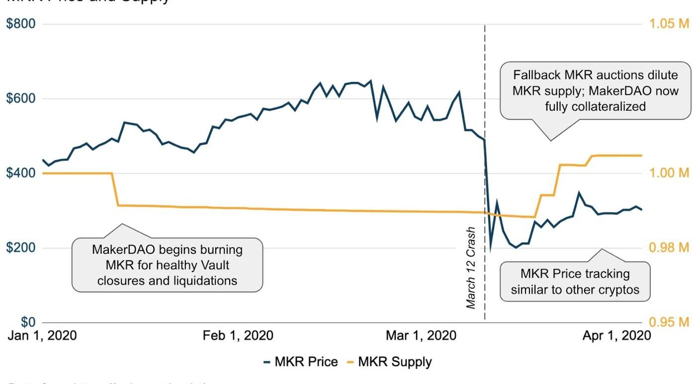 最終結果:一個保管者幾乎免費獲得了400萬美元的ETH,而MakerDAO系統沒有獲得足夠的資金來確保Dai仍然完全超額抵押。值得慶幸的是,MakerDAO為此類意外事件制定了計劃,并增加了第二次拍賣流程,該流程要求鑄造并出售MKR代幣以彌補任何壞賬。這次拍賣是最近進行的,Paradigm以市場價格贏得了大多數拍賣。這實際上意味著MKR代幣持有者經歷了400萬美元的稀釋,但Dai再次回到了足夠的超額抵押化狀態。