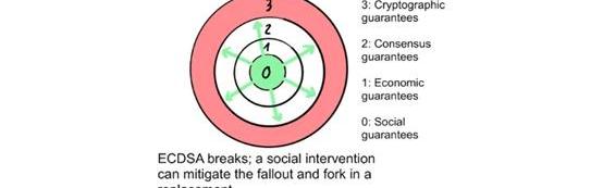 之前我們說過,要永久摧毀一個公鏈就必須摧毀用戶對賬本狀態的信任,以及未來可靠地更新該狀態的能力。這一點是非常必要的,因為區塊鏈并不是目的本身,也就是說沒有理由因為鏈的某些部分暫時失敗,就否定這條鏈。區塊鏈僅僅是一個在其參與者之間建立社會共識的自動化過程的手段,是一個維護和更新共享數據庫的工具。該數據庫的狀態對參與者來說是有價值的,當系統出現故障時,他們有強烈的動力去恢復系統。例如,如果加密的Hash函數出現問題,社會層可以達成人為共識來替換出現問題的部分。