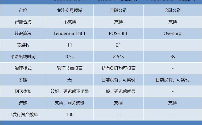 以下是三大交易所公鏈對比圖: