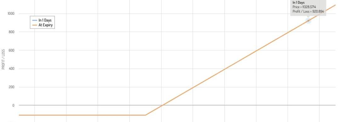 Buy10500Call@290,Sell10000Putl@277調整過后收益曲線在10000-10500之間的收益都保持為期權費之差290-277=13,Bitcoin價格<10000時,才會產生行權虧損,帶有價差的合成合約適合踏空后恐高的交易者進行亡羊補牢,當市場向上動能充足時仍能產生足夠好的收益。總結