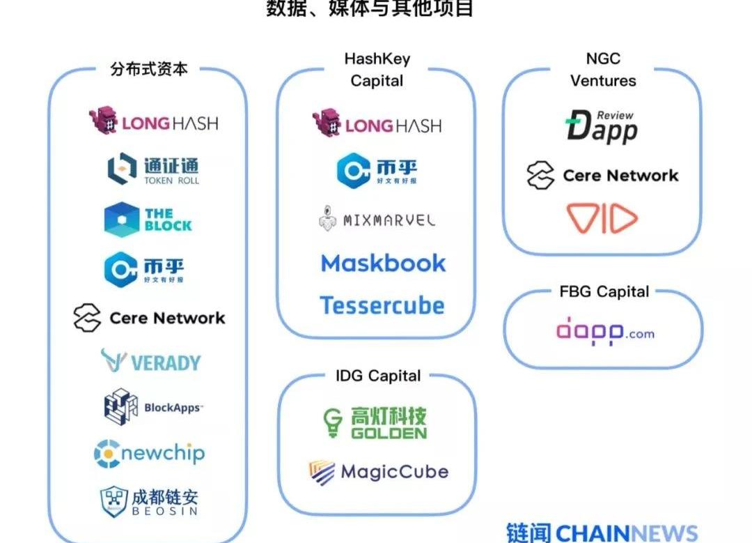 該類目下都是核心投資項目之外的一些周邊生態,包括媒體、DApp聚合平臺、稅務平臺、企業級工具等,每個細分領域的項目都比較少。分布式資本除了偏愛交易生態之外,還投資了不少這些區塊鏈生態周邊的項目,也是這兩個類目下投資最積極的亞洲區塊鏈風險投資機構。
