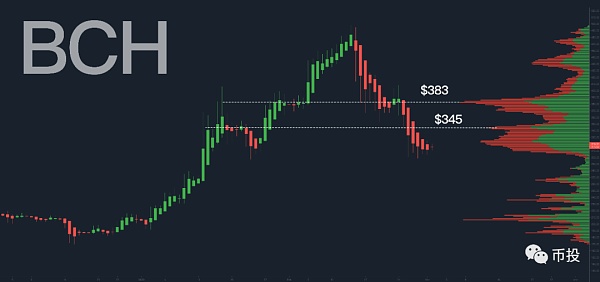 BCH:$345和$383是現階段籌碼量能最高的兩個壓力位。