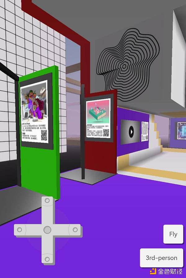 Cryptovoxels(簡稱CV)類似于開放游戲“我的世界”,這個由一個個小像素塊構成的游戲中,玩家沒有目標,沒有任務,更沒有游戲設定的NPC,有的只是一塊塊地皮,購買屬于你的CV地皮,這塊地方可以有無限可能。微博數字美術館正是基于CV的虛擬藝術展覽,一進入這塊地皮就可以看到巨大的微博數字美術館的海報還有高懸在頭頂的新浪微博的LOGO,天空還有一只飛翔著的巨大的鳥,這是屬于藝術家的一件別致展品。