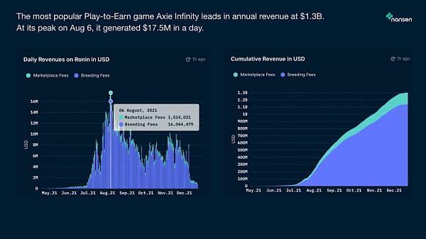 Axie Infinity引領了這一潮流,帶來了 $1.3B 的年收入。通過引入他們自己的區塊鏈Ronin使增長成為可能。在鼎盛時期,該鏈每天有 110 萬個活躍地址。