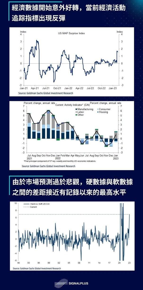 風險情緒的顯著改善和金融形勢的放松最終波及實質經濟領域,經濟活動開始意外上行,當前活動追蹤指標看起來象是在11月已經觸底;此外,雖然調查數據和前景預測仍然低迷,但實際的經濟數據結果卻表現得比調查數據更好,顯示市場過度悲觀,已經準備好要應對最壞的情況。