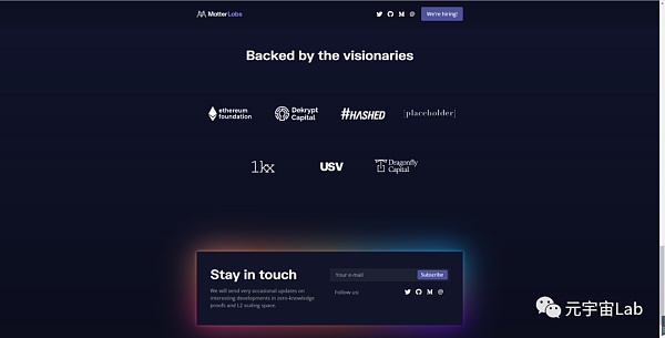 2021年11月8日,以太坊擴容方案 zkSync 背后開發公司?Matter?Labs?宣布完成 5000 萬美元融資,本輪融資由?a16z?領投,Placeholder、Dragonfly、1kx、Blockchain.com、Crypto.com、Consensys、ByBit、OKEx、Alchemy、Covalent 等參投。天使投資人包括 AAVE 創始人 Stani Kulechov 等。本輪融資資金將用于擴大?Matter?Labs?的研發和工程團隊,并為其業務增長提供資金。