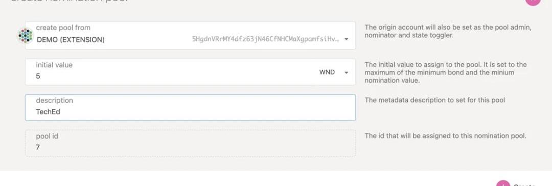 用戶界面自動為池分配ID,并允許輸入池的名稱以及要綁定的存款。