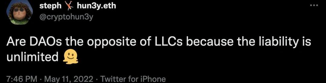 來自Steph的推文,分享他對于身處沒有什么法律保護的DAO的感受