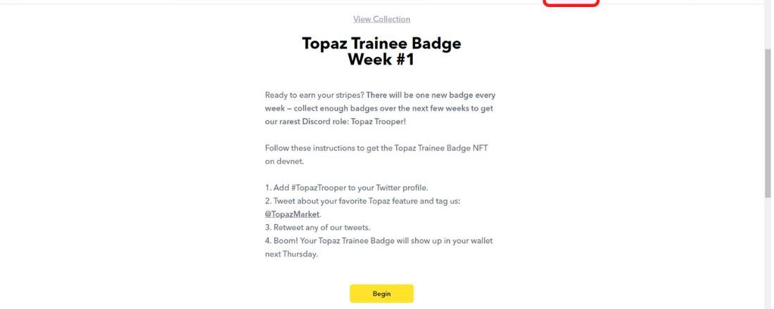 訪問https://www.topaz.so/并連接錢包。此應用程序將使用Martian錢包。