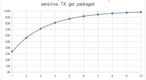 但是,還有一個指標——是討論最壞情況的,即你能不能保證你的交易至少能上鏈。咱們繼續來計算,如果還按照2/3計算,那么其實在98%的情況下,10個區塊內你的交易肯定是能上鏈的。永遠都有礦池可以不理會美國監管的要求的,你要做的,就是等待。