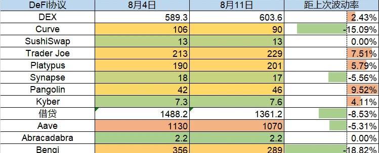 本周整體TVL上升1.6B,上升幅度達2.3%,同期BTC上漲3.3%,ETH上漲達10.97%,上漲遠不及主流代幣漲幅。