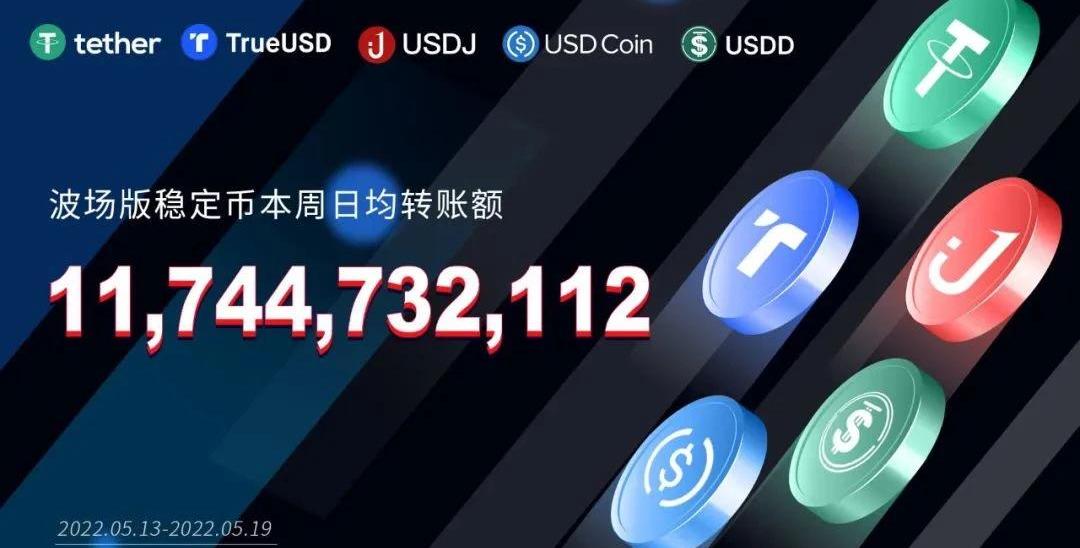 XRP/HKD-0.96%據區塊鏈瀏覽器TRONSCAN數據,過去一周,波場版穩定幣日均轉賬額為11,744,732,112美元,突破117億美元!