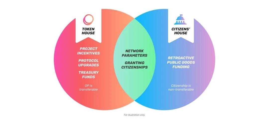 Optimism5是一個很好的例子,說明這種情況可能會是什么樣子ーー在模型中既有靈魂綁定代幣(“公民之家”),也有可互換治理代幣(“通證之家”):