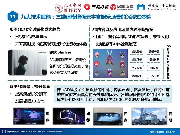 2021年元宇宙橫空出世,成為資本市場的興奮劑、學術界的熱議焦點。然而元宇宙究竟如何改變我們的生活方式,又能帶來哪些新的機遇?這些問題眾說紛紜,我們仿佛看到了一個偉大的時代即將到來,但依舊是“霧里看花”,僅能隱隱得看到一個“輪廓”。但我們堅信,未來不是預測的,而是創造的。通過深度數據梳理與反復邏輯推演,民生研究院聯合人大重陽金融研究院、抖音西瓜視頻,元宇宙30人論壇聯合發布了虎年第一篇230頁《2030年的元宇宙產業》深度報告,希望同各位一起,迎接下一個“沸騰新十年”。