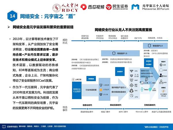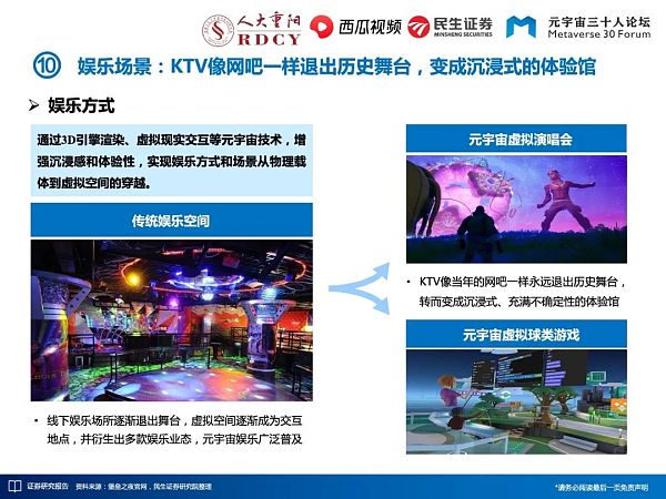 本篇報告沒有過多著墨于元宇宙的來源以及詳細定義,而是立足于傳統互聯網存在的種種問題,通過對用戶習慣的揣摩,技術路徑的演化,打破常規提出了十年后元宇宙的3大預言,6大規則,9大技術和15大元宇宙核心場景。