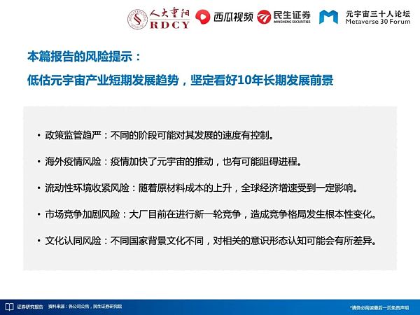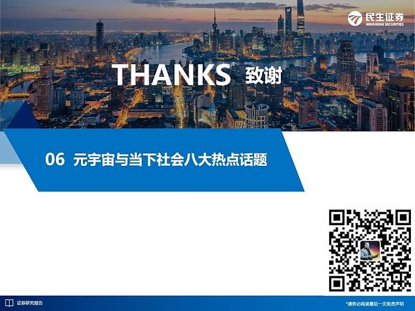 當讀完《2030年的元宇宙產業》報告時,元宇宙的大幕已徐徐掀開,我們正同所有的創業者、投資者們一起,迎接下一個風云激蕩但又注定是前程錦繡的明天——民生元宇宙首席分析師馬天詣敬上 。