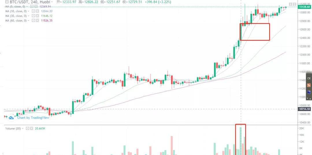 同時從上圖我們看出目前中樞的重心已經從12600的位置上移到了13000的位置。最強BTC已經出現,波動率下降,收益率提升,賺錢效應明顯,市場共識得到反復確認。