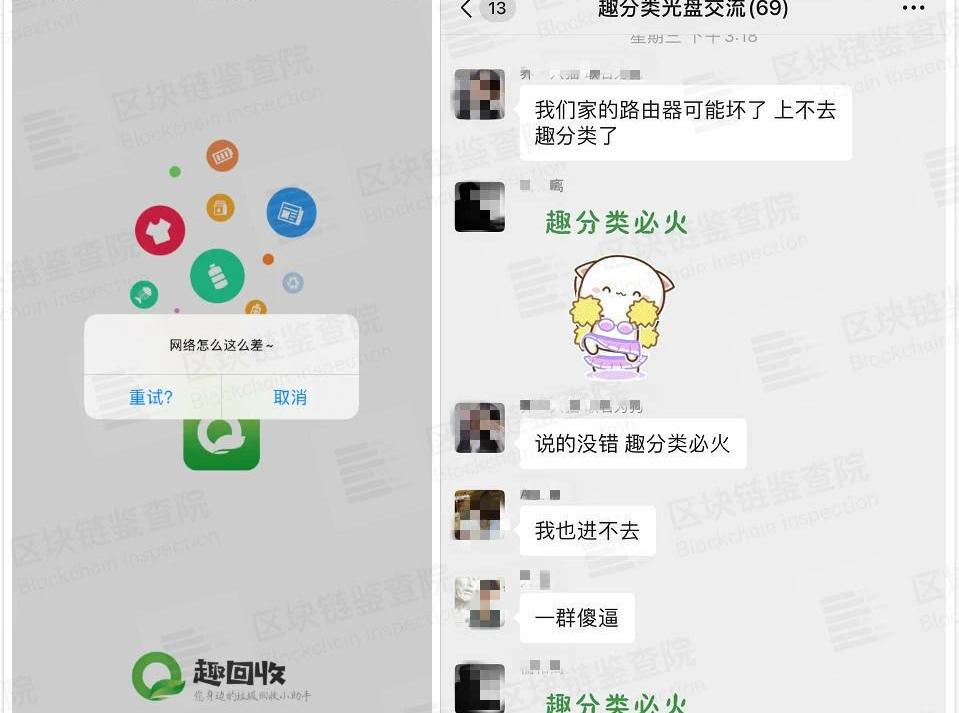 上午,趣分類APP打不開,顯示網絡故障,“趣維權”建維權群。