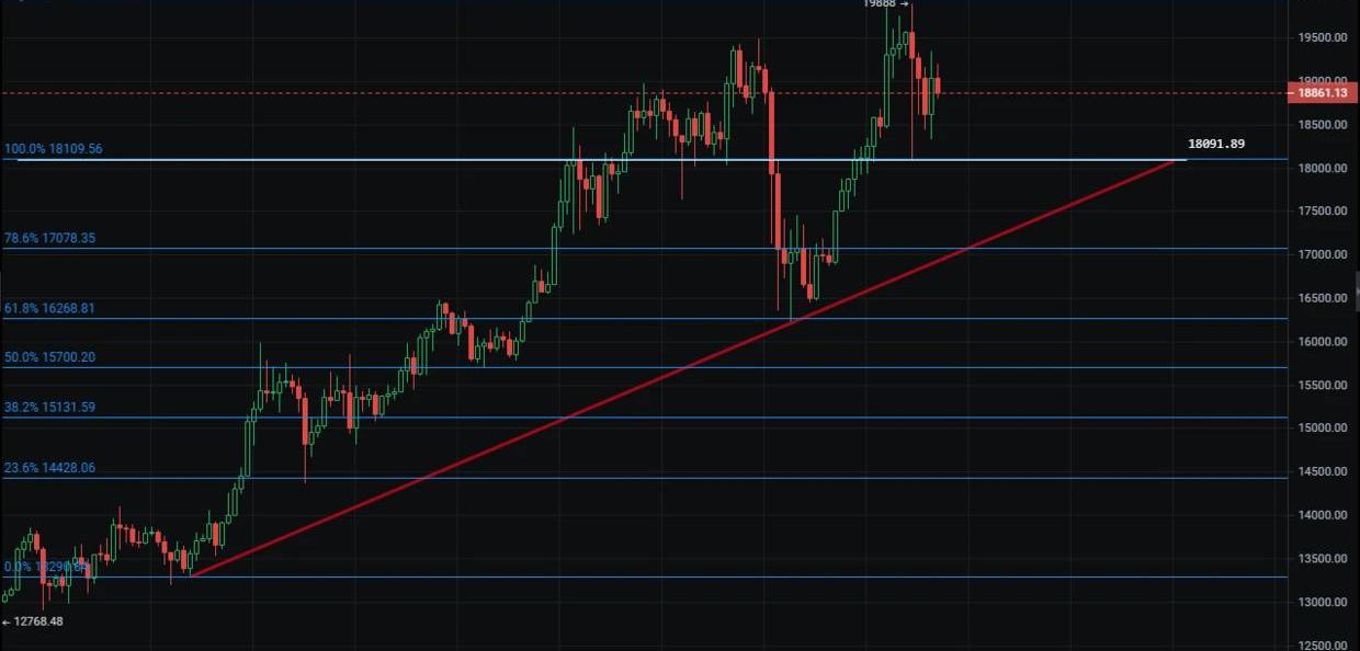 從4小時技術分析角度看,經過前兩個月的一輪暴漲,目前比特幣市場已經進入了高位持續震蕩中。這種幾乎直線式的價格運動形成了三角旗形的旗桿,可能會進入持續整理階段,一般而言,三角旗形態會持續1-2周,預計未來兩周內比特幣的價格會突破該形態:如果比特幣價格擊穿18000并企穩,那么比特幣很有可能進入下跌通道,如果比特幣價格企穩18000上方,那么比特幣將上漲到20000不是問題!