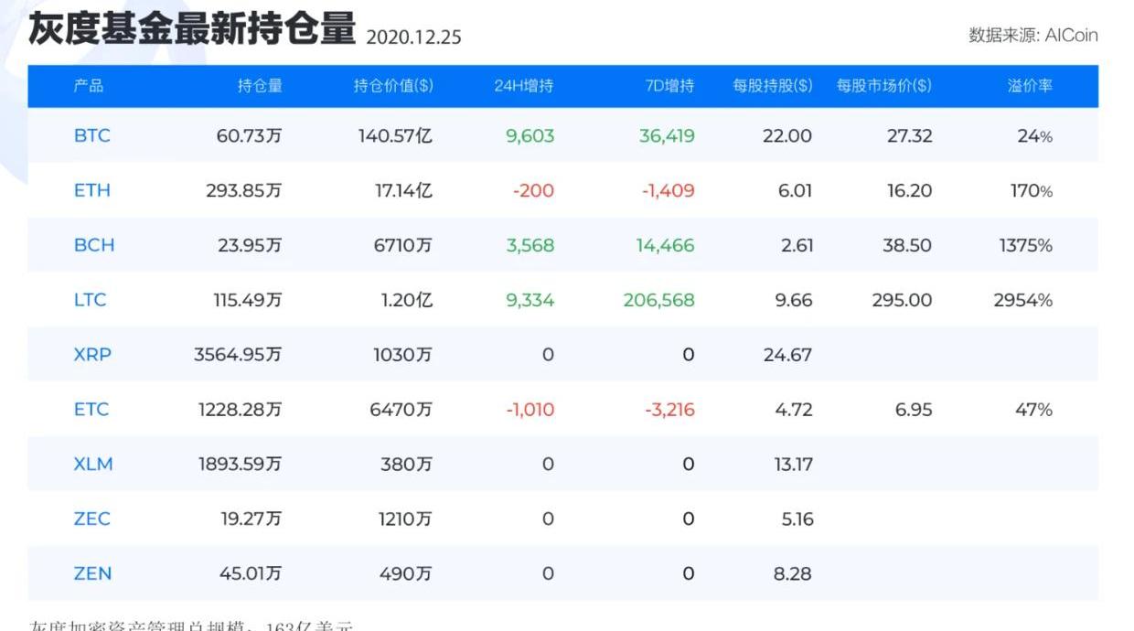 美東時間12月24日,灰度信托持倉數據變化如下: