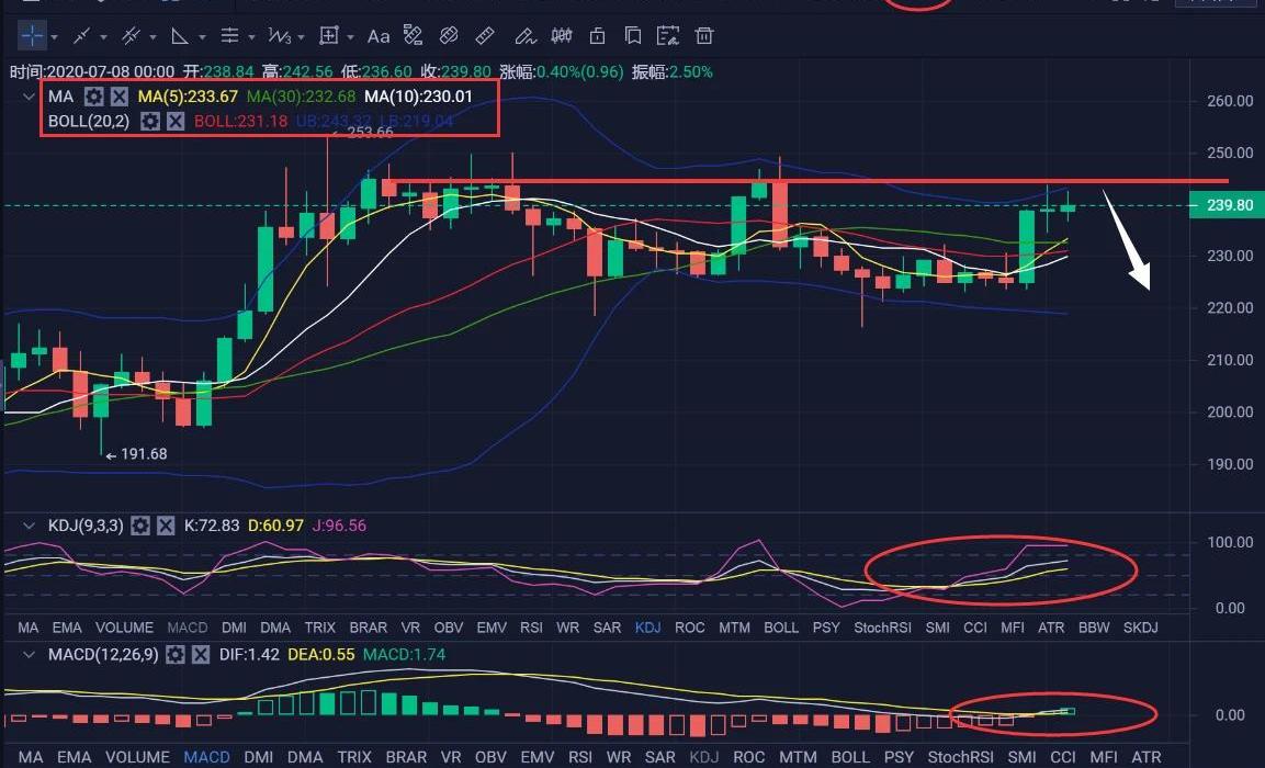 昨日以太坊開盤在238.82一線,最高抵達243.77一線,最低抵達234.44一線,收盤于238.84一線,漲幅達到:0.01%(0.02),振幅達到:3.91%。