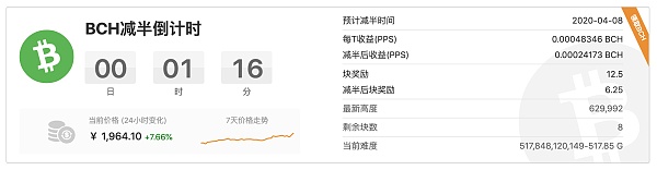 此次調整,發生在BCH減半前的幾個小時。截至發稿時,BCH 減半時間再次提前,預計在19 時 35 分達到減半區塊高度 630000。