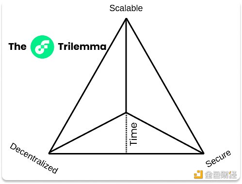每一條新的一層公鏈本質上都試圖用新的且更好的方法解決不可能三角,要么通過消除取舍的必要,要么通過強化在某一角的優勢:可擴展性、去中心化和安全性。
