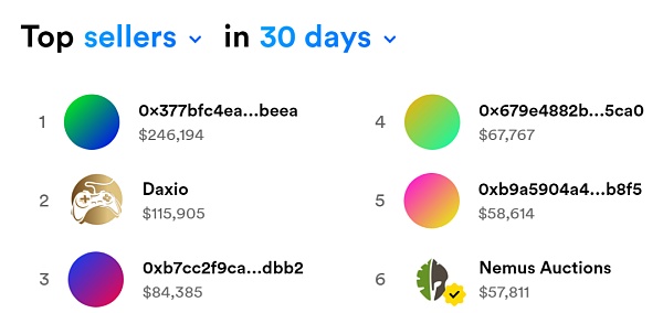 包括這5個項目在內,已經有42個NFT項目的交易量突破1億美元。